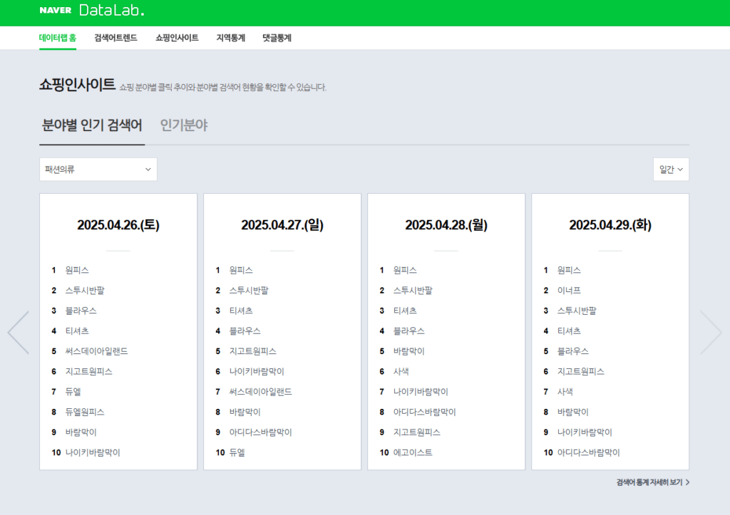 - 네이버 데이터랩 (Naver DataLab) : 국내 소비자 타깃 분석에 강하며, 특히 네이버 마케팅/쇼핑몰 운영자에게 유용