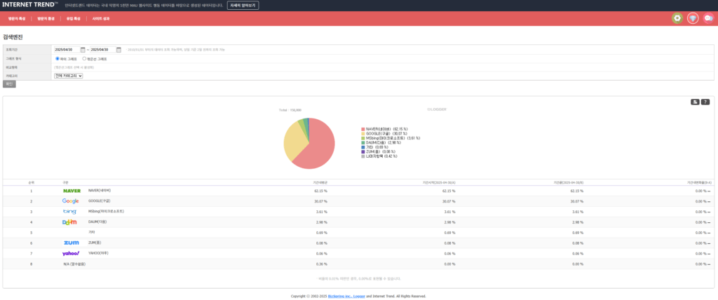 - 국내외 주요 검색엔진 점유율, 행동, 전환 데이터까지 종합 분석 가능