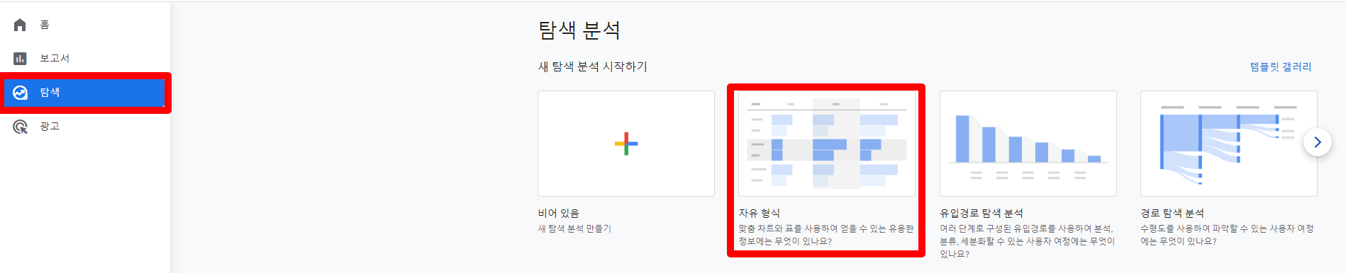 - 먼저, 탐색 > 자유 형식을 선택해 들어갑니다.
