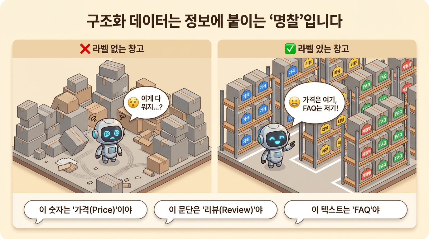 구조화 데이터는 AI가 정보를 빠르게 찾을 수 있게 해주는 ‘명찰’입니다.