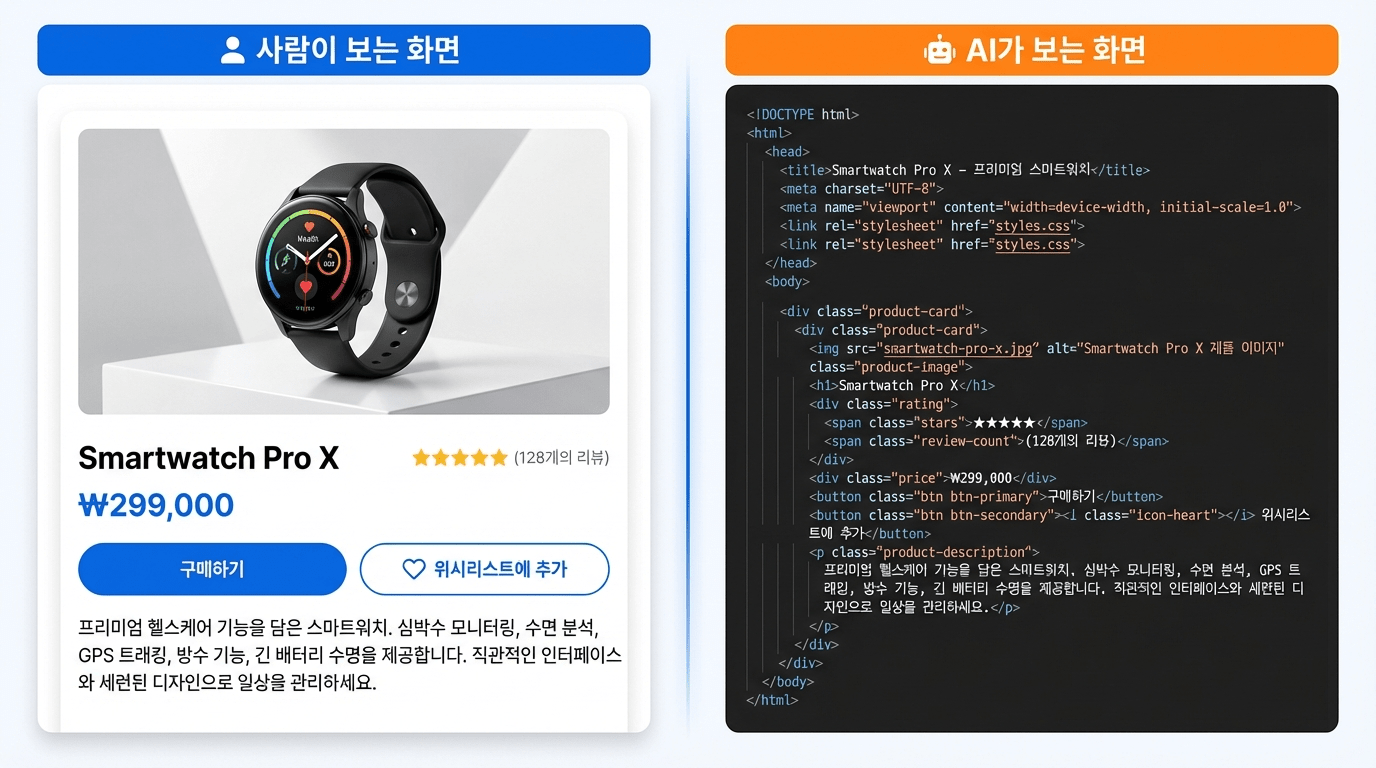 사람이 보는 화면 vs AI가 읽는 코드