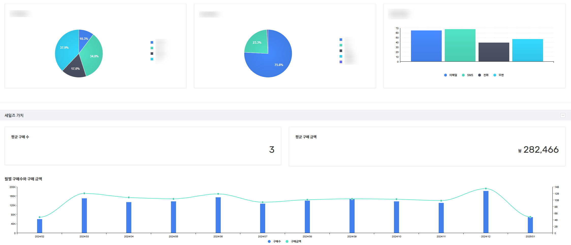 또한, 브랜드 인지부터 신규 회원가입, 이탈, 반복구매, 고객 가치 향상 등 충성고객까지 온/오프라인 통합 분석으로 고객에 대한 입체적인 이해를 할 수 있었습니다. 이를 통해 고객별 쿠폰, 사은품 제공, 제휴 헤택 등과 같이 혜택을 맞춤형으로 세분화 및 설계하여 비즈니스 목표에 최적화된 마케팅을 설계할 수 있었습니다.