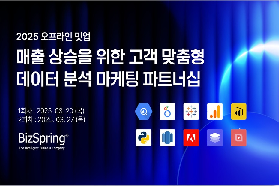 비즈스프링이 1:1 오프라인 밋업을 개최합니다. 이커머스 기업의 데이터 분석 파트너인 비즈스프링은 자사 데이터에서 인사이트를 발견하여 성장에 도움을 드리고 있습니다. 1:1로 편하게 이야기를 나누는 자리이니, 데이터 분석을 통한 매출 상승에 니즈가 있으시다면 부담 없이 참여바랍니다.